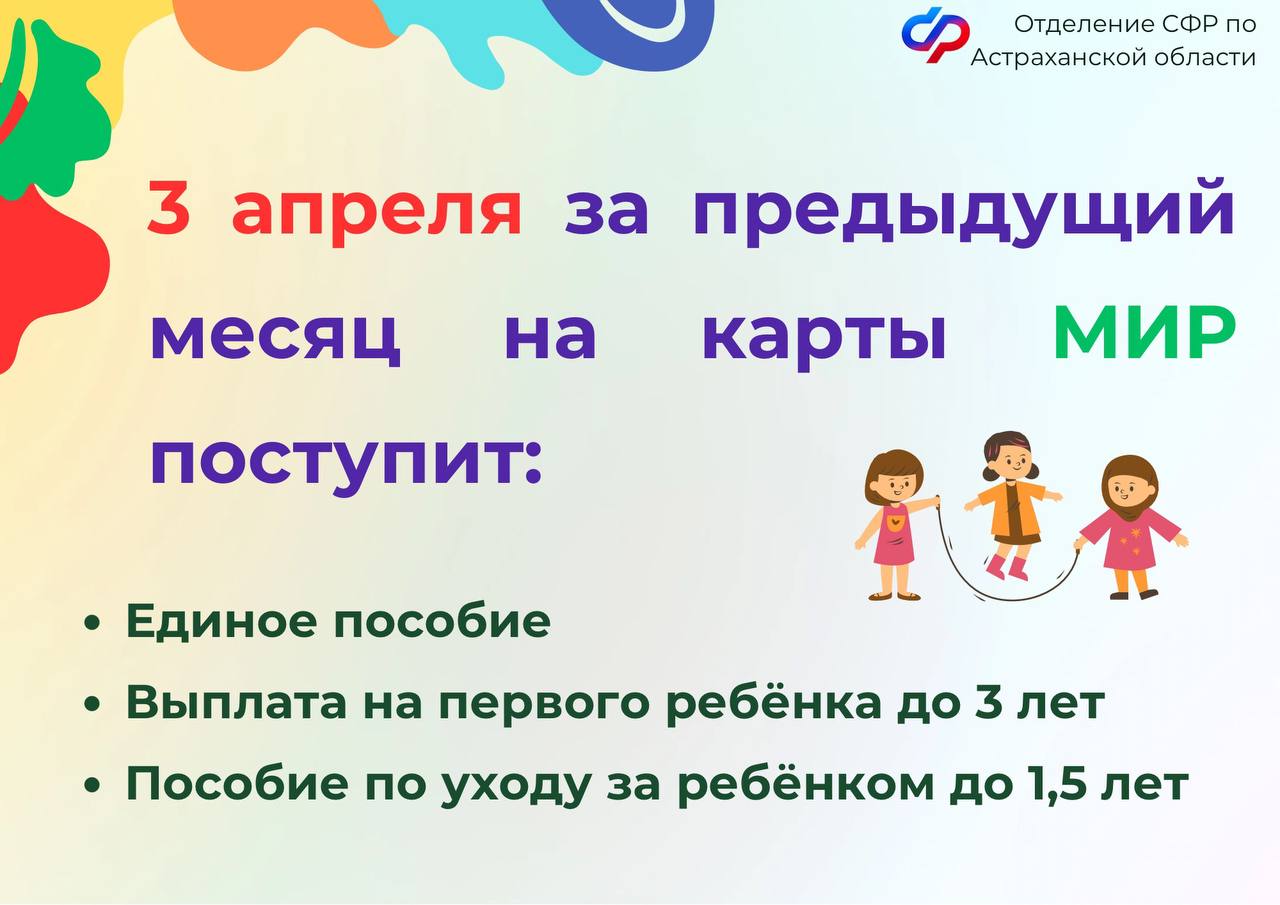 3, 4 и 8 апреля – дни зачисления выплат семьям с детьми на карты и счета