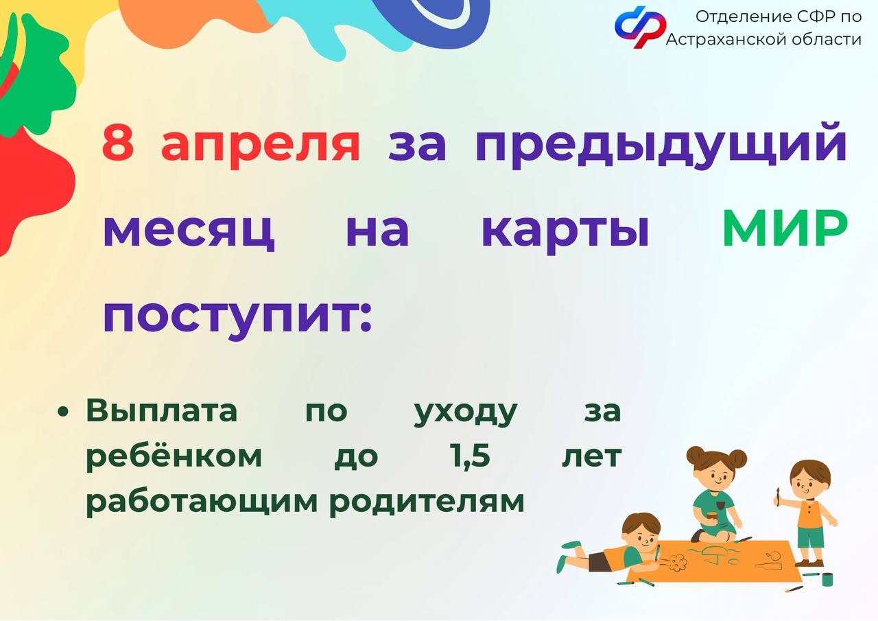 Если дата выплат приходится на выходной день, то денежные средства переводят на банковские счета накануне в рабочий день. Поэтому в апреле ежемесячная выплата из маткапитала за ребёнка до 3 лет осуществляется 4, а не 5 числа.
