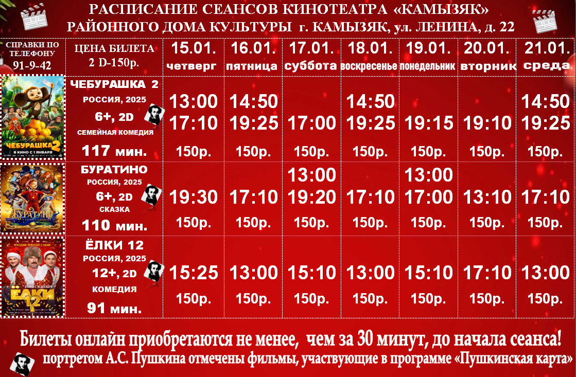 АФИША КИНО с 15.01. по 21.01.