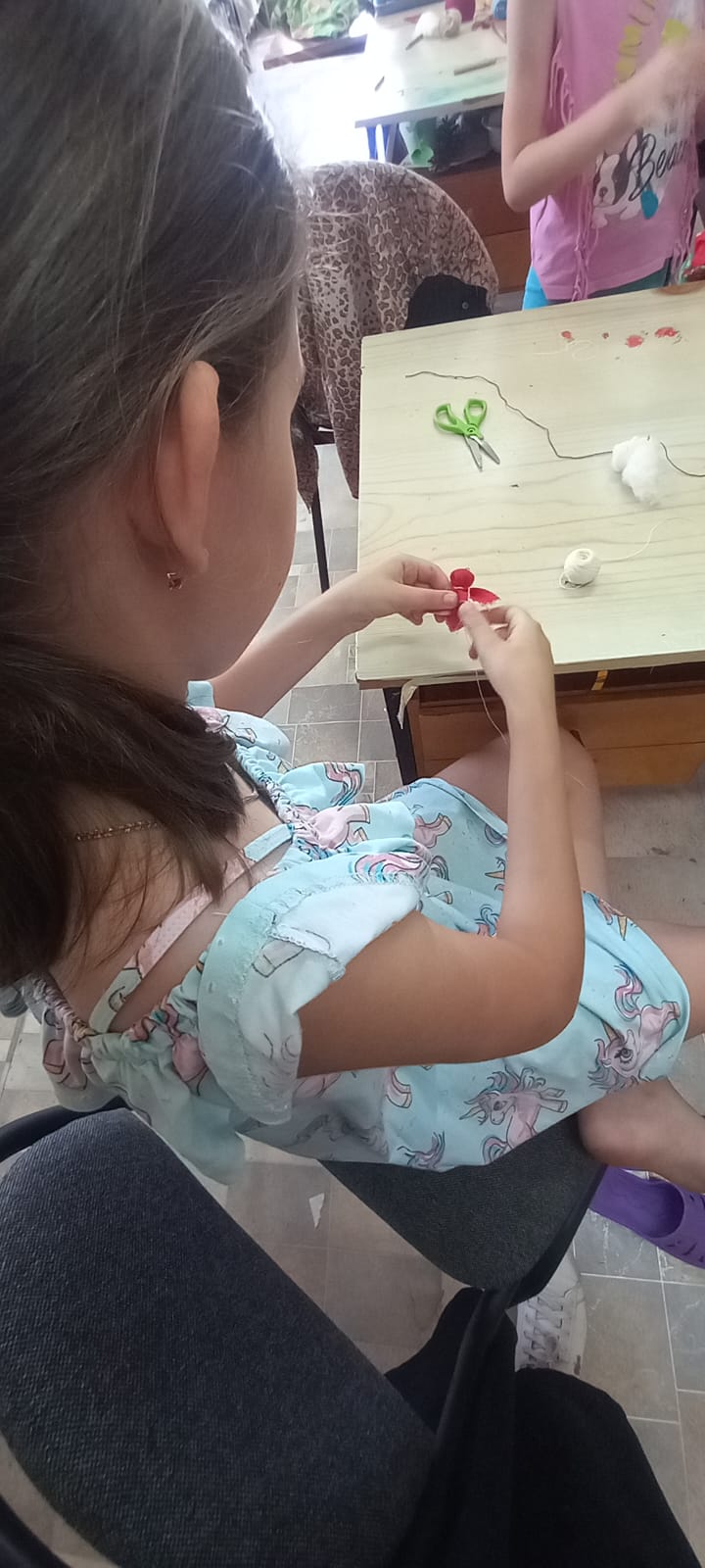Во время летних каникул дети нашего поселения посещали кружок «Наши руки не для скуки» в Раздорской сельской библиотеке, где принимали активное участие в помощи волонтерской группы «ТЫЛ» от Раздорского сельсовета. Волонтеры показали мастер класс по плетению маскировочных сетей. Дети быстро освоили уроки по плетению и с большим удовольствием помогали в изготовлении сетей. Также под руководством библиотекаря Кикбаевой Г.И. дети подготовили открытки с пожеланиями для наших солдат и ангелочков-хранителей с молитвенниками. Всего было изготовлено более 50 шт. Работа волонтеров совместно с детьми — это не только хороший досуг в летнее время, но патриотическое воспитание!