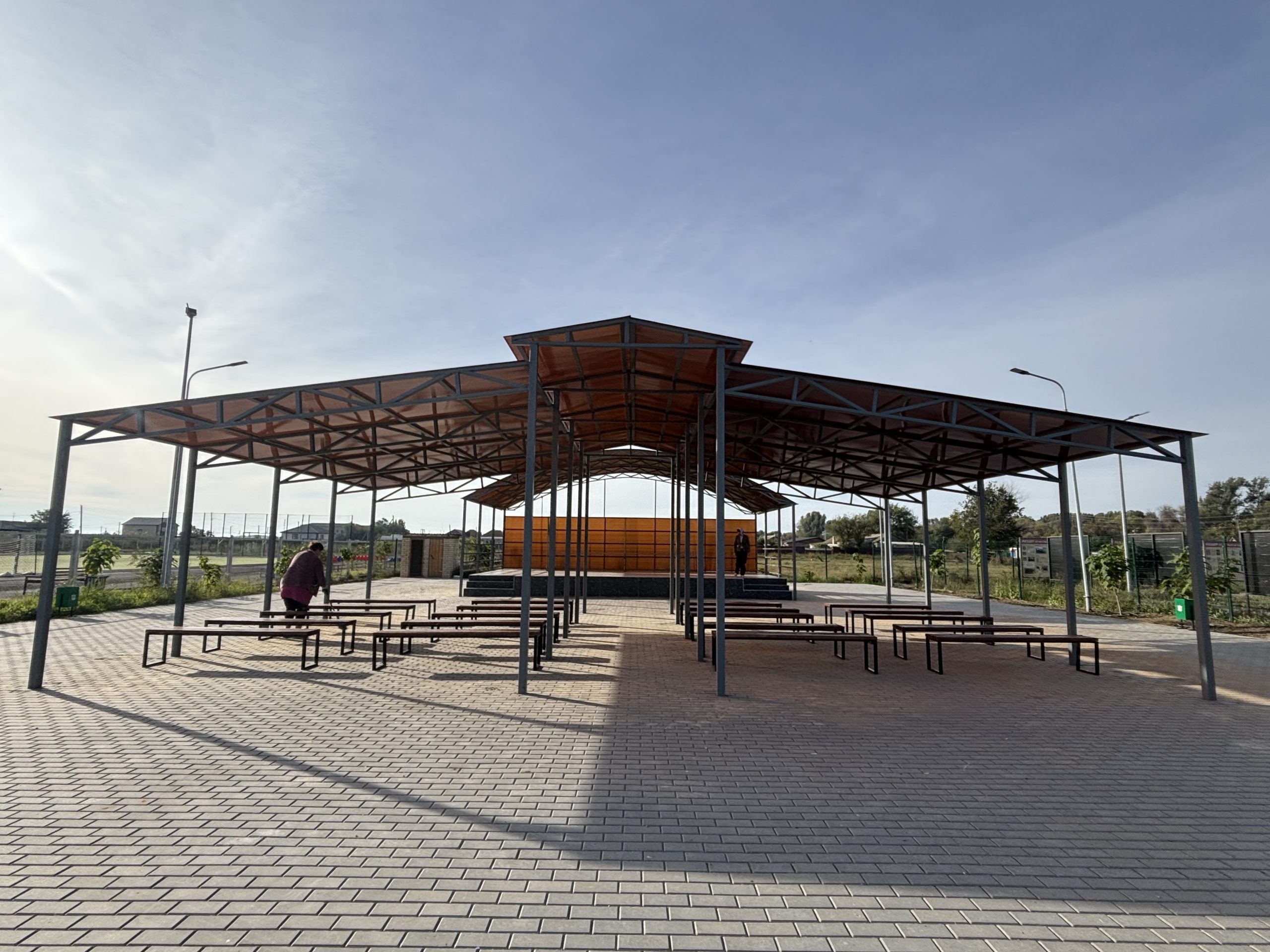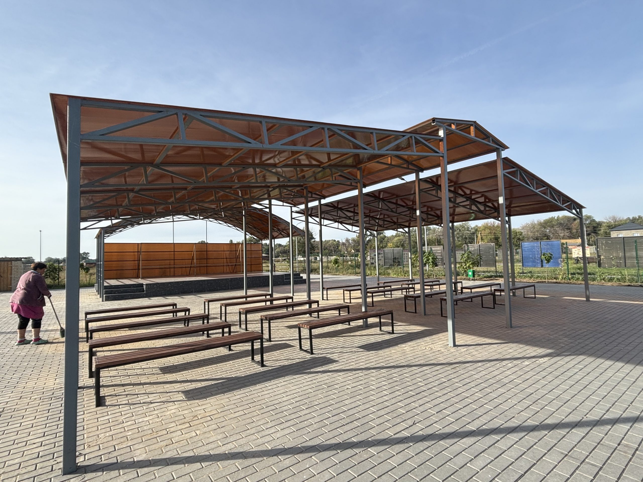 Закончились работы по установке крытого навеса для театральной сцены и зрительной площадки согласно проекта по благоустройству зоны отдыха в парке Победы 2 этап.